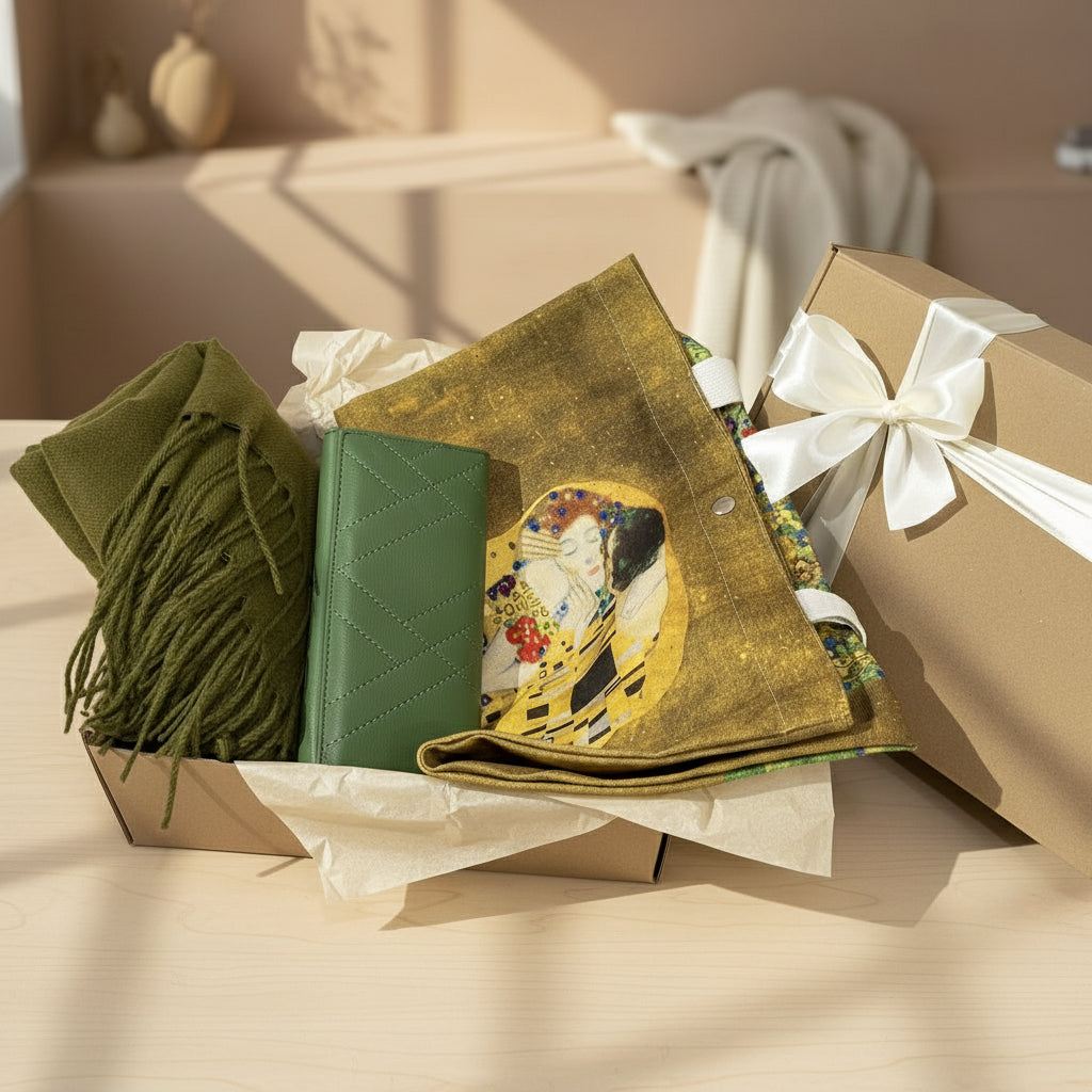 Потопете се в нежност, стил и артистично вдъхновение с нашата кутия „Целувката“, вдъхновена от прочутата картина на Густав Климт. 🎨